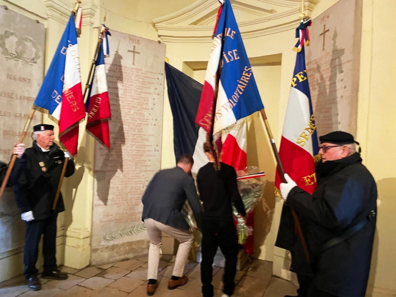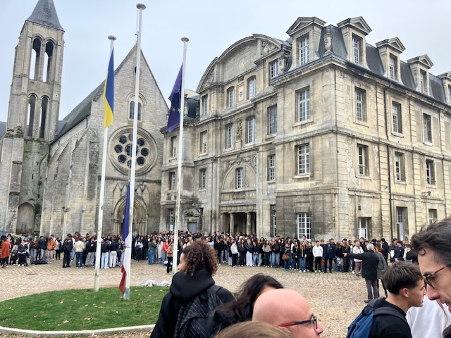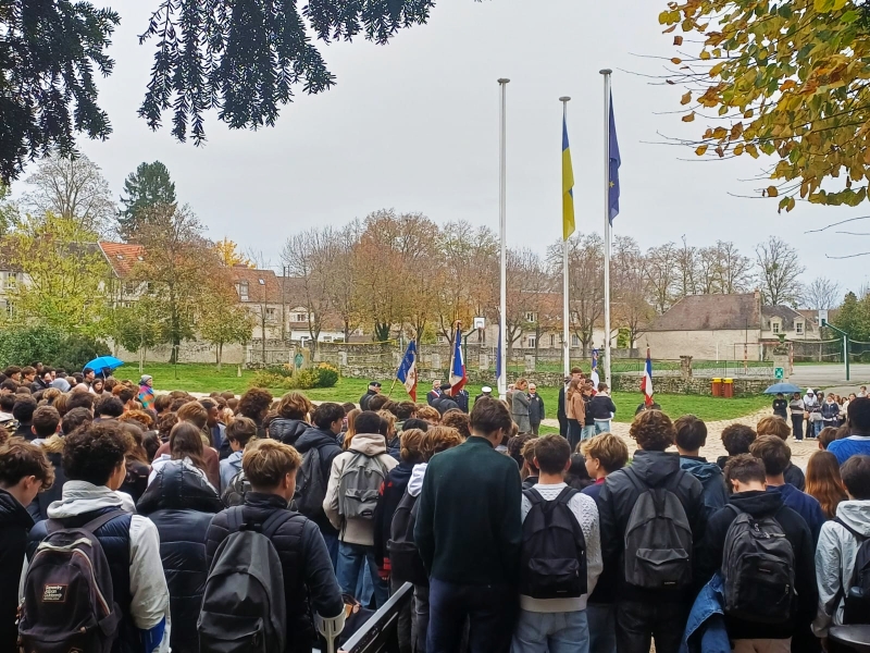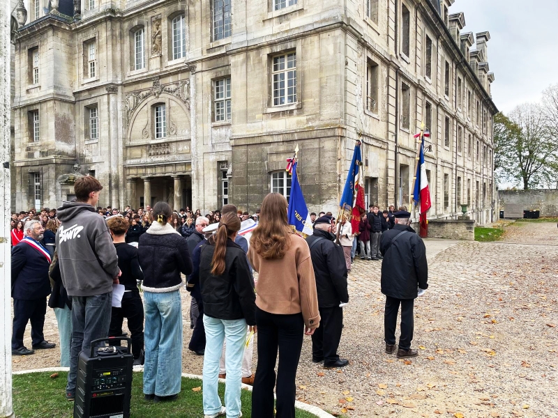 Ce lundi 10 novembre, élèves et adultes du lycée, associations d'anciens combattants et association des anciens élèves du lycée, tous se sont retrouvés pour évoquer le souvenir des combattants de la guerre 1914-1918. Un temps de recueillement, un dépôt de gerbe aux monument aux morts du lycée et la Marseillaise entonnée d'une seule voix ont fait de ce temps de recueillement, un bel hommage à nos soldats morts pour la France. Merci aux enseignants d'histoire et à toutes les associations participantes. (Photos : mesdames Lecomte, Leroux et Poirier)
