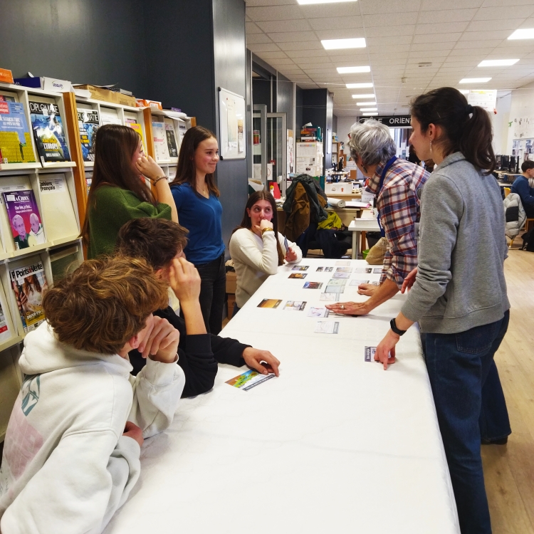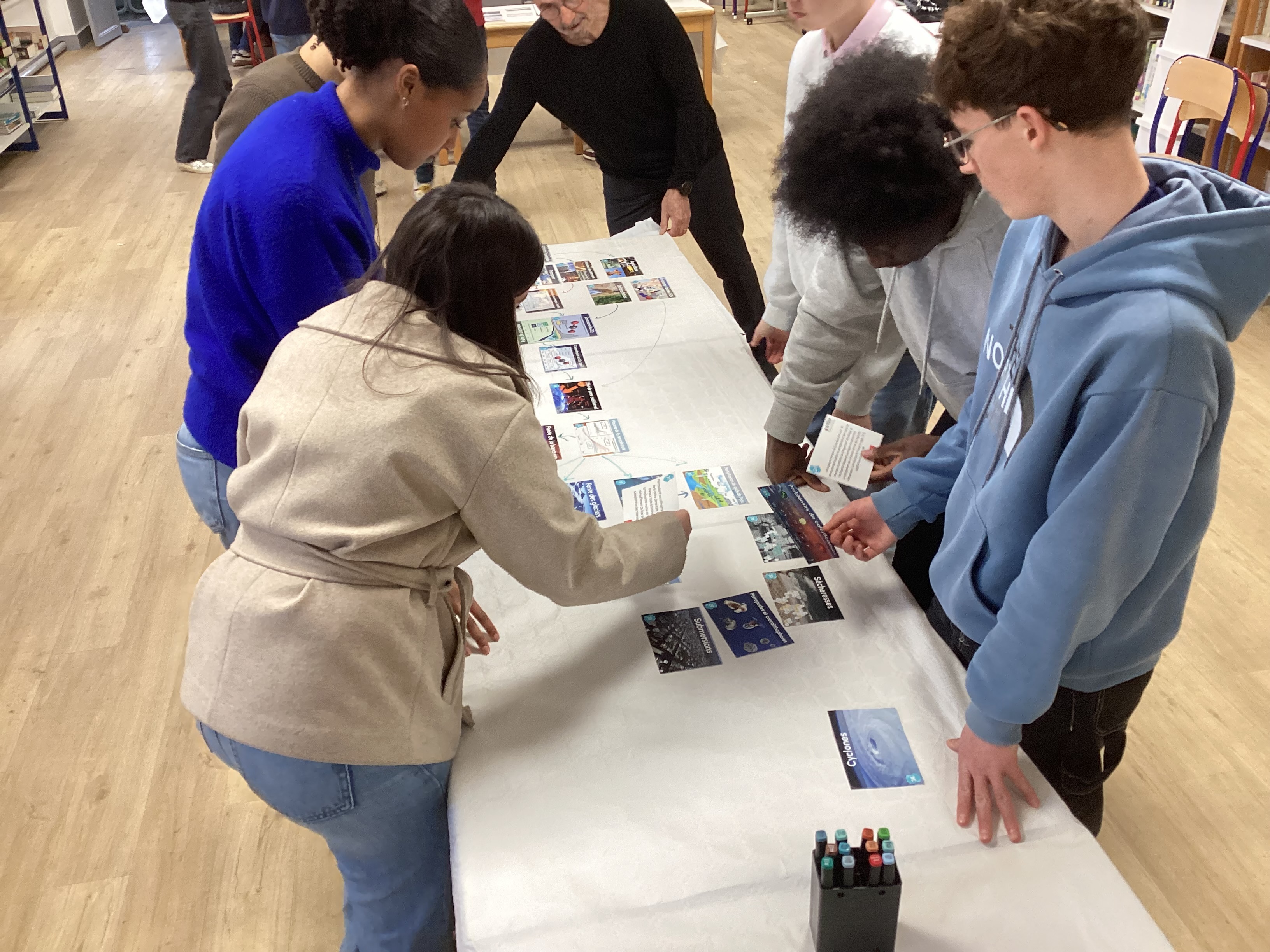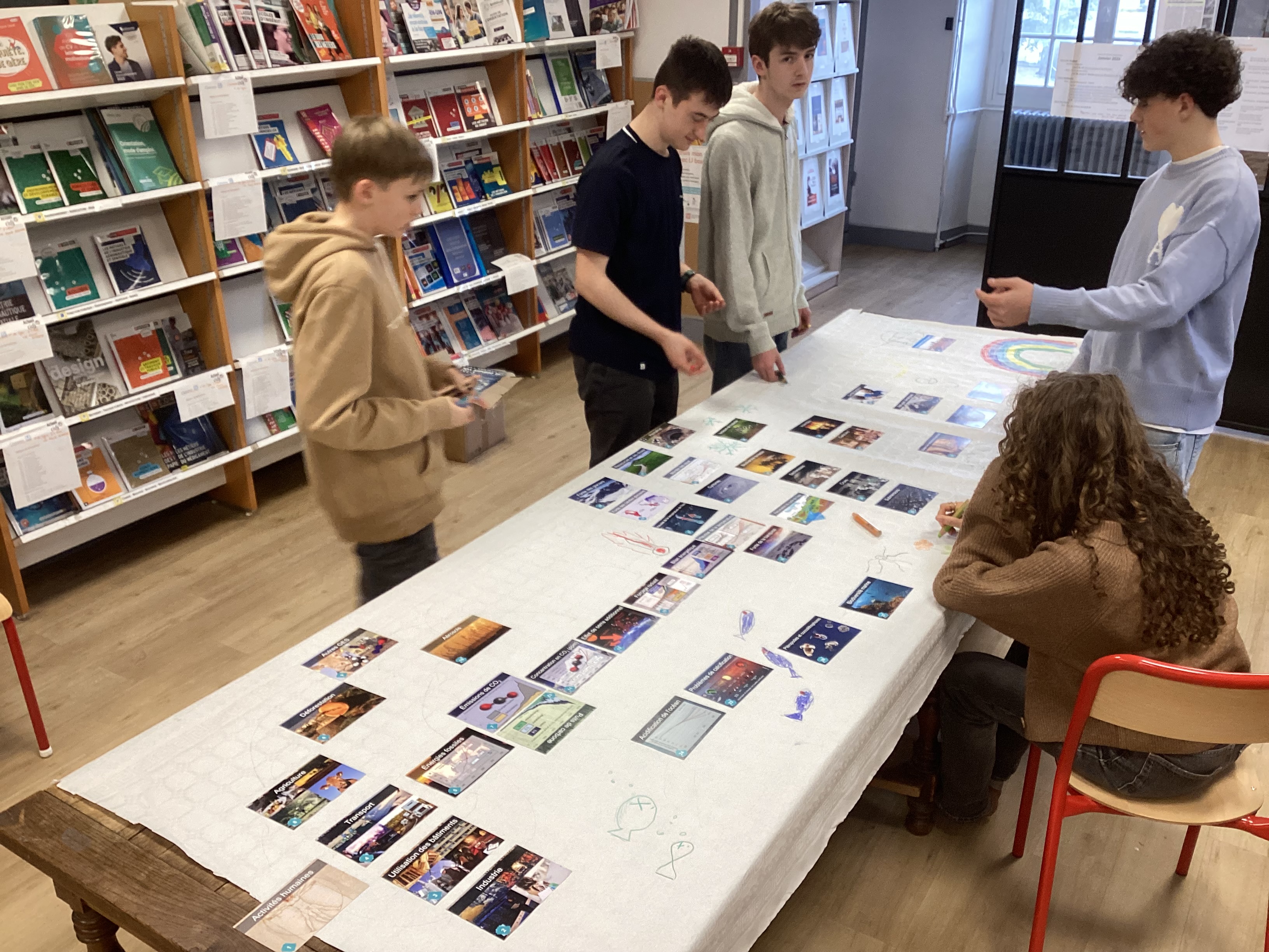 Ce jeudi 12 février, à l’initiative de Mme Benoist, une quarantaine d’élèves : les Eco-délégués, l’option EPS seconde en lien avec l'association Demain c'est nous et Eco-lycée, se sont retrouvés au CDI, accueillis par le collectif « Senlis en transition », pour un atelier Fresque du climat. Julie, élève de terminale et co-animatrice de la fresque nous raconte. (Photos P.Rigault/S.Monnier)