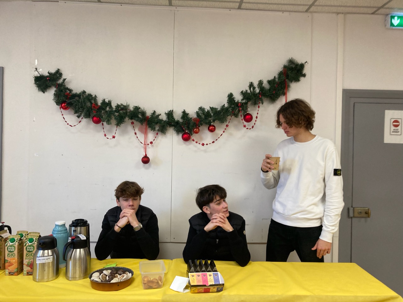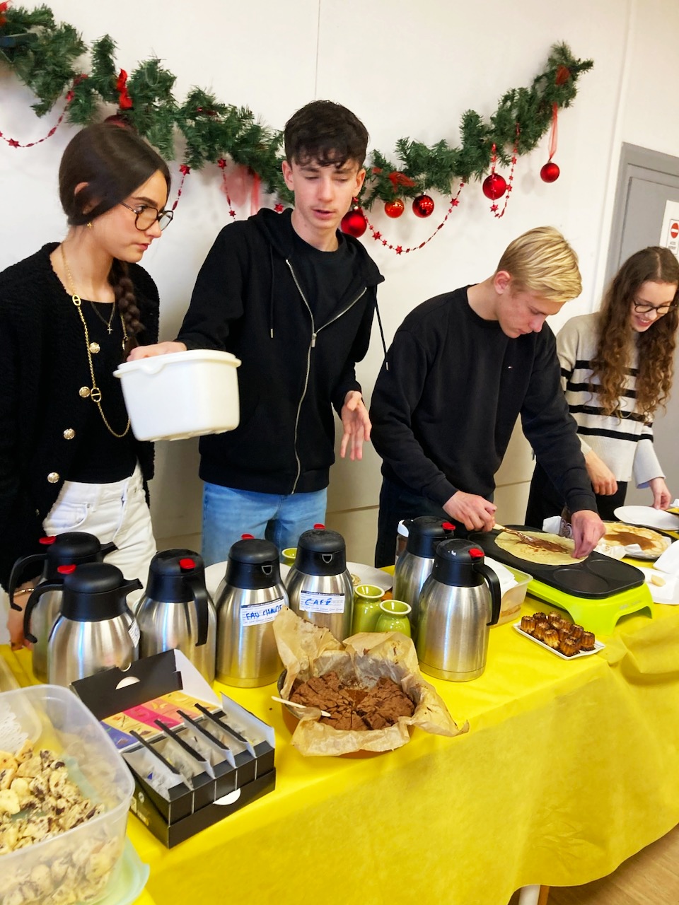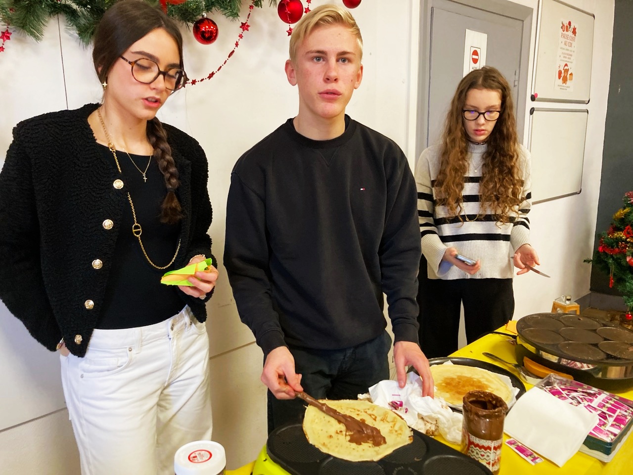 Pour son 3ème jour d’ouverture, le salon de thé éphémère de la STMG a été en rupture de stock ce mercredi 17 décembre. La demande de crêpes a été trop forte, surtout à l’heure de la récré. Après le rush, petite conversation avec le groupe de service.