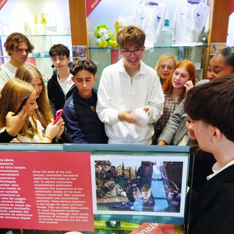La filière STMG, accompagnée de messieurs Daniel et Kouniali et mesdames Leroux, Lecomte et Monnier a passé la journée à Paris ce mardi 7 octobre. Au programme : une visite du musée de la contrefaçon qui, des accessoires de mode - baskets, sacs ou ceintures - aux jouets, en passant par les médicaments, les oeuvres d'art ou les aliments - a permis d'explorer les impacts de ce fléau sur la vie économique et sociale des entreprises. Brevet, marque, contrefaçon ou inspiration... Des nuances intéressantes pour ceux qui s'intéressent à la gestion et au commerce ! Les élèves ont pu jouer aux jeux des erreurs pour tenter de reconnaître le vrai du faux... Pas toujours facile !