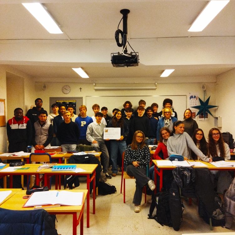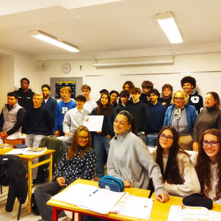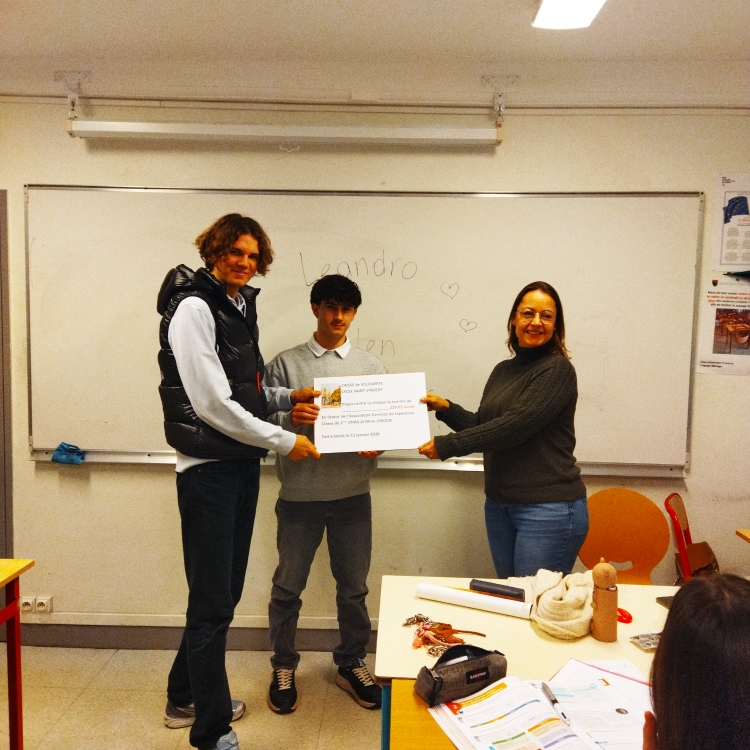 Ce matin du 13 janvier, la 1ère STMG et Mme Leroux ont accueilli Stéphanie Rodriguez en classe pour lui remettre un chèque au bénéfice de son association, Caminos de Esperanza, suite aux fonds récoltés lors du salon de thé de décembre. Stéphanie a présenté avec une vidéo les engagements et les conditions de travail de l'association en Colombie et des bénévoles qui y oeuvrent. Avec le chèque de 226,63 euros que la classe a remis, deux enfants vont pouvoir être parrainés. Helen et Leandro, âgés de 8 ans vont pouvoir recevoir le matériel obligatoire - uniforme notamment - pour se rendre à l'école pendant un an et être ainsi remis dans un parcours scolaire pérenne. Les deux enfants ont fait visiter leur maison dans une petite vidéo. Un superbe engagement concret pour la classe et un vrai chemin d'espérance sur les chemins de Caminos !