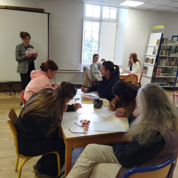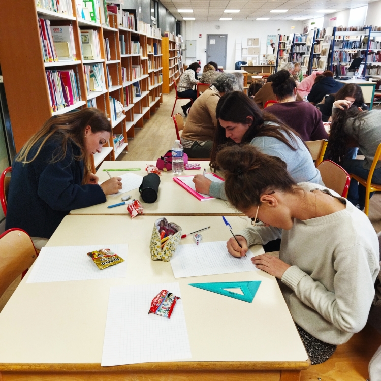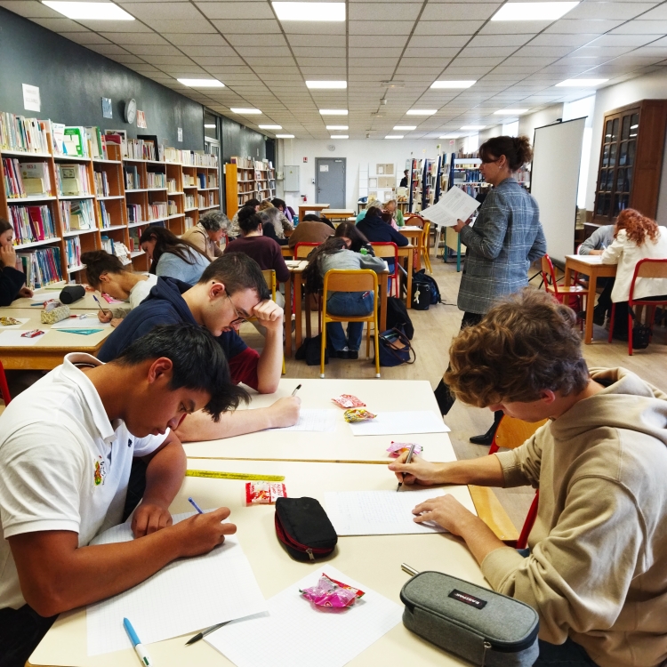Mardi 14 octobre, le CDI et la section ST2S ont proposé la dictée ELA. Chaque participant a rapporté 1 euro qui s'ajoute à la collecte des élèves qui ont vendu des gâteaux la semaine dernière. Mme Hougron a joué le jeu de la lectrice d'un texte de Valérie Perrin qui raconte les péripéties d'un enfant malade et d'un petit chiot. Bravo à tous les participants, adultes ou élèves !