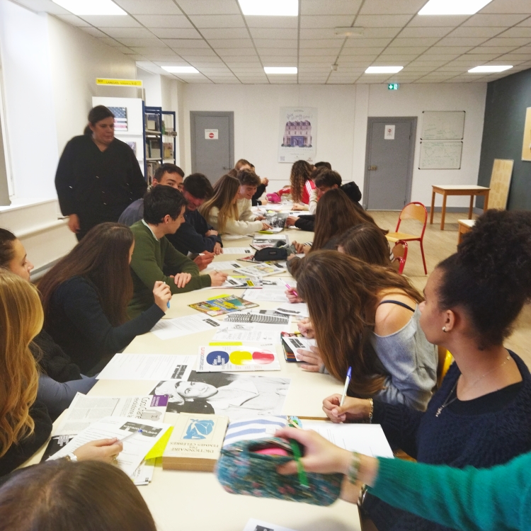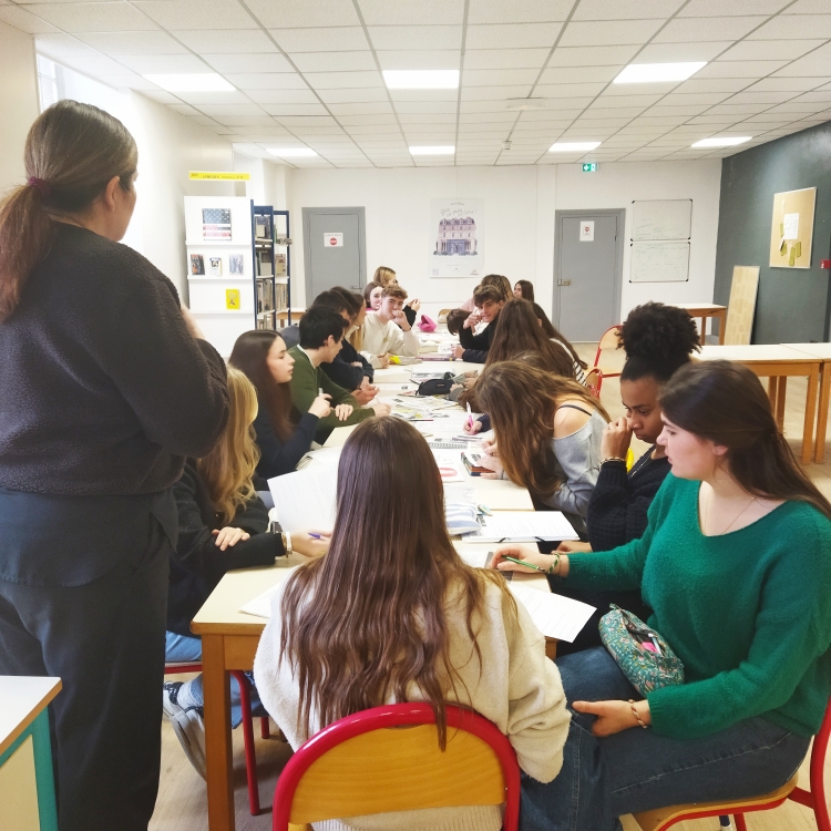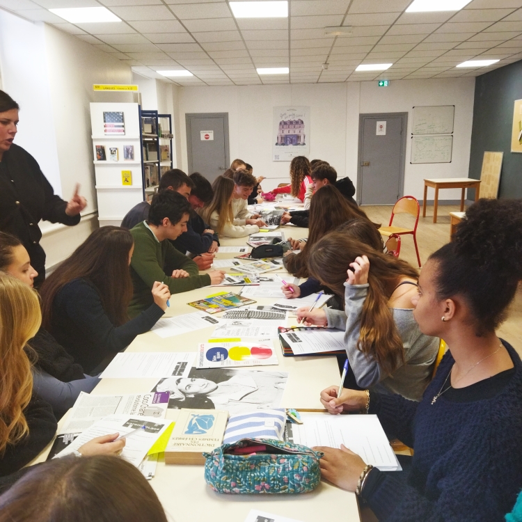 Le groupe de 1ère Spé HGGSP de Mme Bardin est candidat au concours Karambolage d'Arte. Face à 47 lycées concurrents, ils doivent se démarquer en créant une mini-émission sur un sujet de leur choix. Le temps est compté, ils doivent avoir tout réalisé pour février ! Les idées ont fusé ce jeudi, au CDI, sur un sujet qui restera secret pour l'instant. Affaire à suivre de très près !